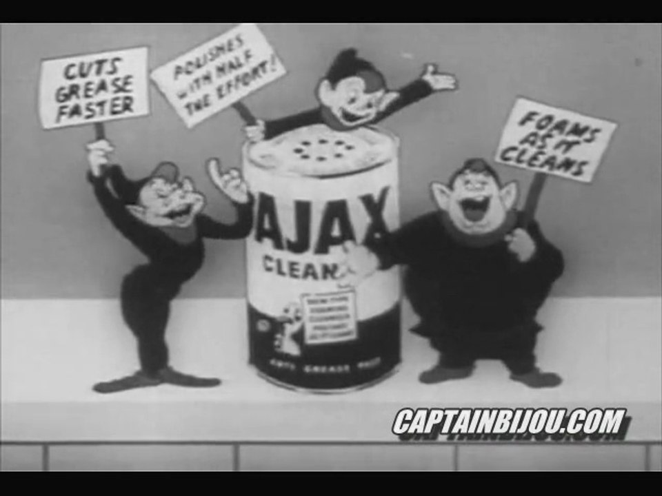 Captainbijou 1947 animated television commercial for Ajax the foaming cleanser featuring a memorable catchy jingle. Citation needed Advertising and popular culture. This commercial was originally produced by Shamus Culhane Productions in New York and was one of televisions first animated commercials produced for television.